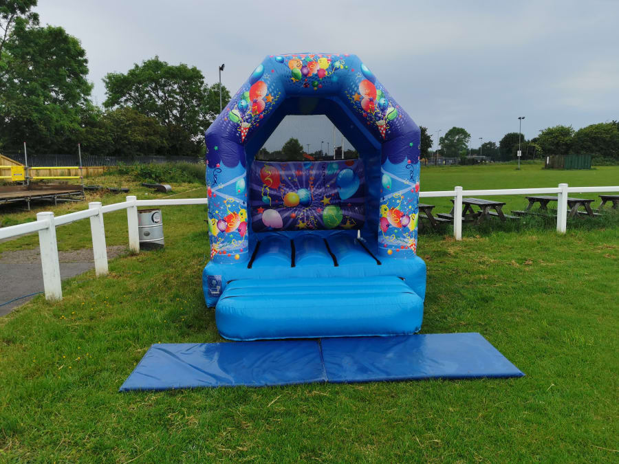 Blue balloons bouncy castle 8ft x 10ft perfect bouncy castle for small gardens