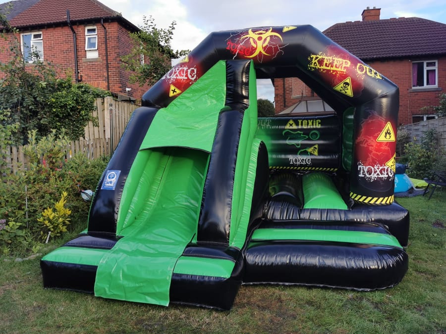 Combo Toxic bouncy castle 12ft x 15ft very popular at children's party and any other occasions. Not only does it have fun of a bouncy castle but it also has a slide.